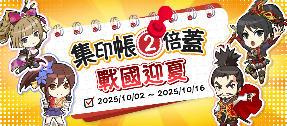 於 2025 年 10 月 02 日(四)即將舉行「集印帳蓋印雙倍活動」,活動期間登入將可獲得集印帳蓋印雙倍。