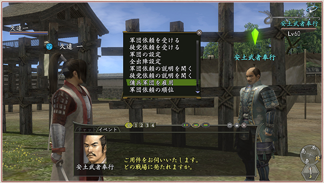 嚴島之戰,可以從NPC【安土武者奉行】處借用【傭兵軍團】進行攻略。只要借助兵團力量,連還未培育軍團的玩家都能享受【攻城戰】樂趣。