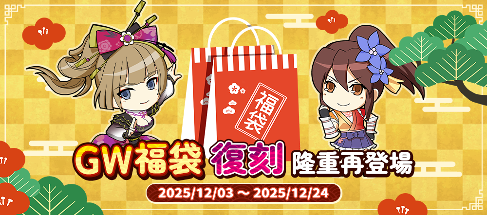 自 2025 年 12 月 03 日(三)起,過去曾登場的《GW福袋》中,將新增全新英傑「大谷吉繼・西軍」以及全新道具,作為《復刻GW福袋・巳》,於萬事屋中隆重登場!